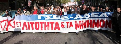 Η ΓΣΕΕ αποφάσισε 24ωρη πανελλαδική, πανεργατική απεργία στις 12 Νοεμβρίου. Ο πρόεδρος της ΓΣΕΕ Γιάννης Παναγόπουλος, στην ομιλία του, αναφερόμενος στις νέες ρυθμίσεις που θα έρθουν για το ασφαλιστικό, έκανε λόγο ότι προωθούνται θηριώδη και επώδυνα μέτρα για την κοινωνική ασφάλιση, ενώ για το πόρισμα της επιτροπής για το Ασφαλιστικό τόνισε ότι η επιτροπή πρότεινε μέτρα που απορυθμίζουν την κοινωνική ασφάλιση, τα οποία αν εφαρμοστούν επί της ουσίας οδηγούμαστε σε συντάξεις όχι στα 67 χρόνια αλλά πάνω από τα 70.