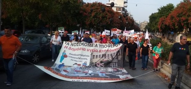 «Πορεία για τη Σωτηρία της Δημόσιας Υγείας» πραγματοποίησε, ενόψει των εγκαινίων της 84ης ΔΕΘ, η Πανελλήνια Ομοσπονδία Εργαζομένων στα Δημόσια Νοσοκομεία (ΠΟΕΔΗΝ) διεκδικώντας λύσεις για τα οξυμένα προβλήματα των εργαζομένων στον κλάδο αλλά και των αποδεκτών των υπηρεσιών υγείας και έχοντας ως κύρια αιτήματα τις προσλήψεις προσωπικού και την επαρκή χρηματοδότηση των δημόσιων νοσηλευτικών ιδρυμάτων και δομών υγείας.