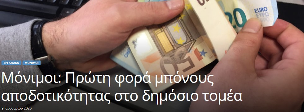 Μόνιμοι: Πρώτη φορά μπόνους αποδοτικότητας στο δημόσιο τομέα